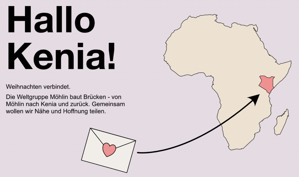 In einem Briefkasten konnten zur Verfügung gestellte Postkarten eingeworfen werden, die dann von der Weltgruppe übersetzt an die Kinder in Kenia übergeben werden. Allfällige Antworten aus Kenia werden hier veröffentlicht - so können kleine, persönliche Brücken entstehen.